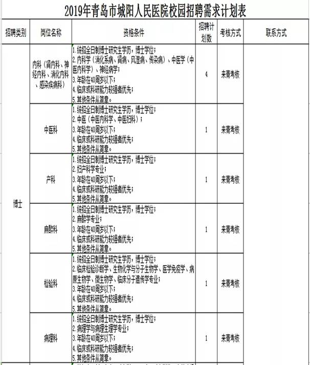 26个岗位61人丨青岛市城阳人民医院(公立三级)诚揽人才——2019年校园招聘开始啦